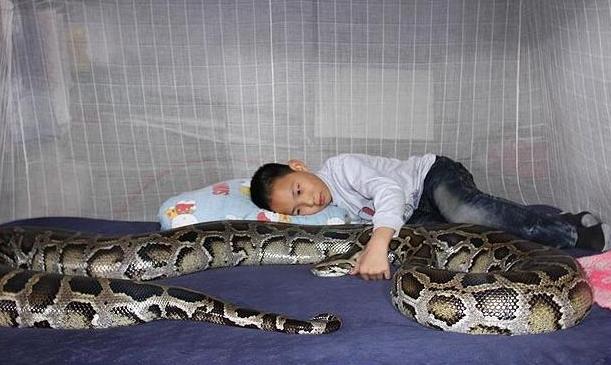 Ένας πατέρας από την Dongguan της νότιας Κίνας βρήκε την τέλεια νταντά για το γιο του. Το 13χρονο Azhe «προσέχει» ένας… πύθωνας 100 κιλών!