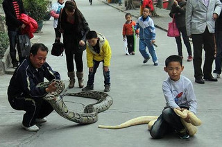 Ο πατέρας του, Chan Liu, τον αφήνει μόνο στο σπίτι με το 4,5 μέτρων μήκους ερπετό. Ο μικρός Azhe δε φοβάται καθόλου το θηλυκό πύθωνα και μάλιστα τον αγκαλιάζει και τον φιλά με τρυφερότητα.