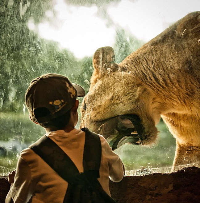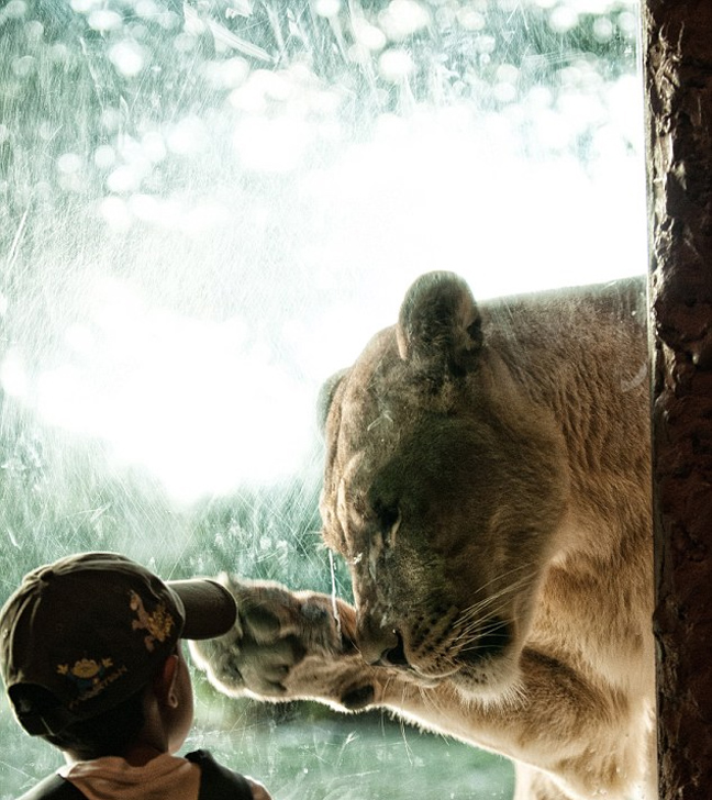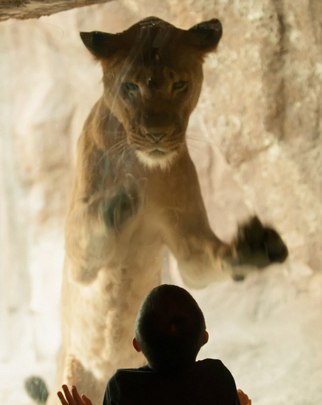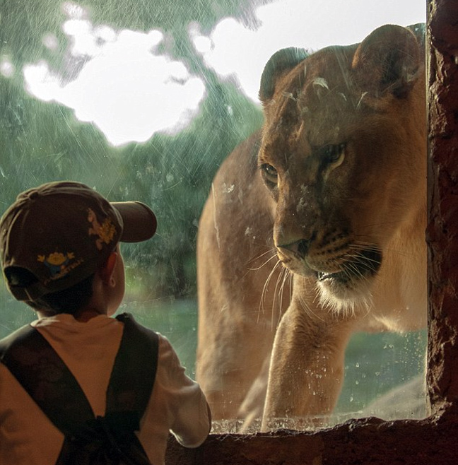 Την «επαφή» ενός λιονταριού με ένα 7χρονο παιδί κατέγραψε ο φωτογραφικός φακός.