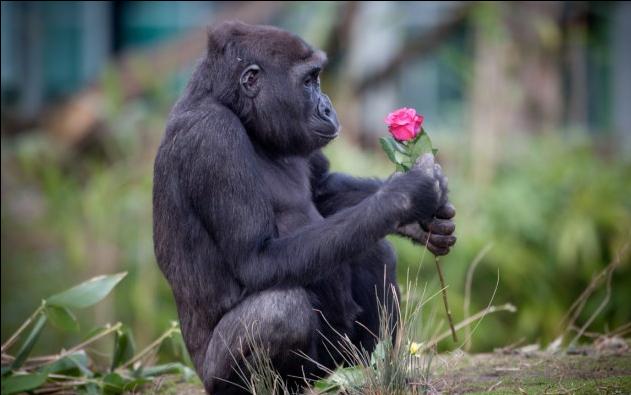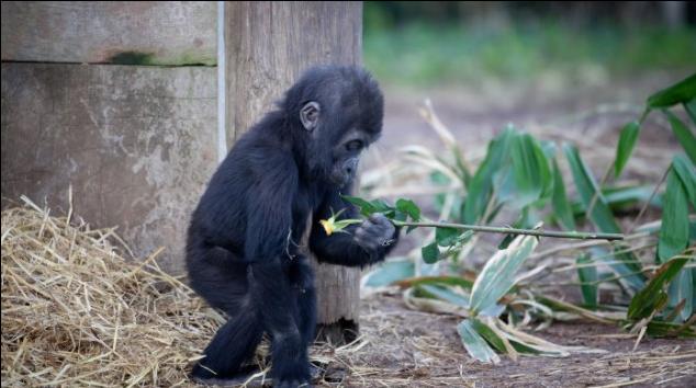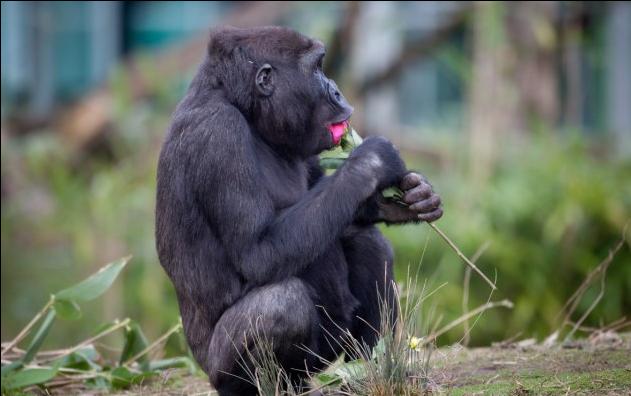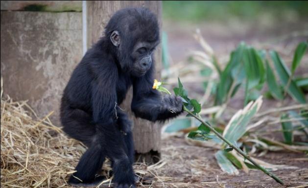 Αφού περιεργάστηκε για μερικά δευτερόλεπτα τα τριαντάφυλλα που είχαν τοποθετήσει οι υπεύθυνοι του ζωολογικού κήπου του Bristol στο χώρο όπου φιλοξενούνται οι γορίλες, ο μικρός Kukena αποφάσισε να… τα κάνει μια χαψιά!