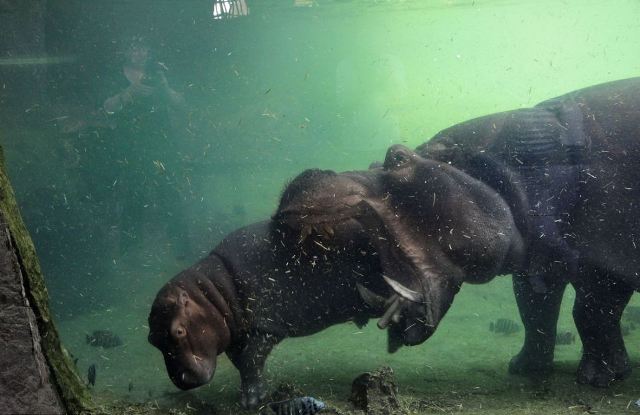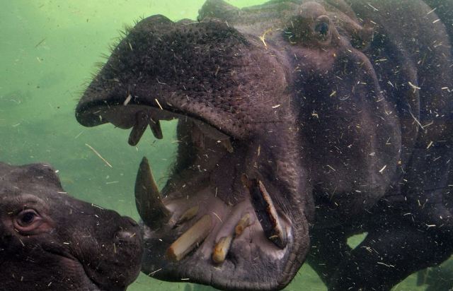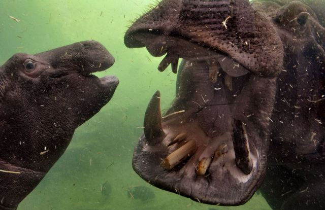Ο πέντε τόνων θηλυκός ιπποπόταμος που φιλοξενείται μαζί με το μικρό της στο ζωολογικό κήπο της Βαλένθια στην Ισπανία, μάλλον πρέπει να κάνει μια επίσκεψη στον… οδοντίατρο!