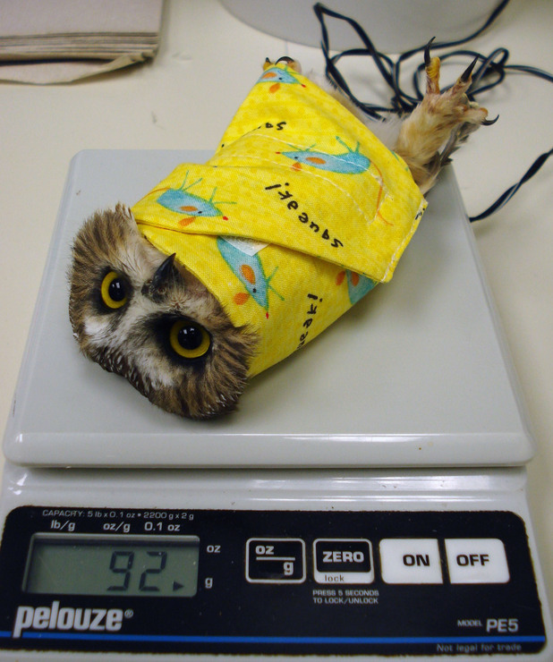 Οι γιατροί αναγκάστηκαν να τυλίξουν την κουκουβάγια σε αυτήν την ειδική κουβερτούλα, για να μπορέσουν να την ακινητοποιήσουν και να της κάνουν τις απαραίτητες εξετάσεις.