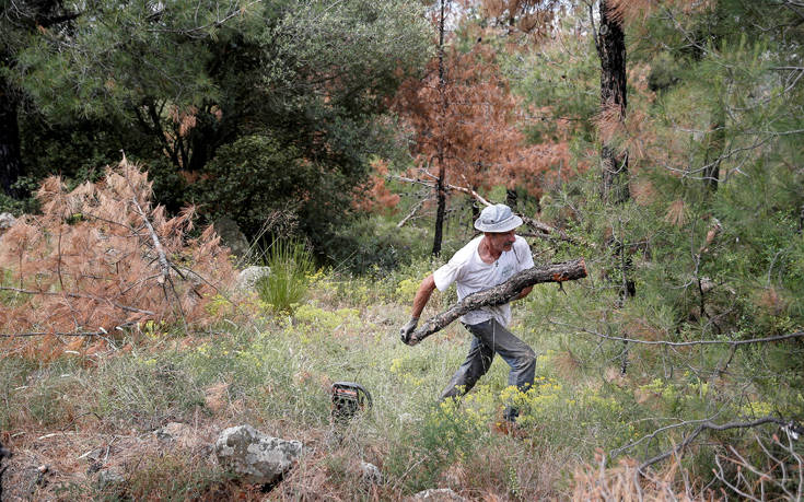 Σχετικά με τις λεπτομέρειες και τη διάρκεια των εργασιών αποψίλωσης της έκτασης που έχει προσβληθεί ο πρόεδρος του συνεταιρισμού Κάτω Σταυρού διευκρίνισε ότι «είμαστε δυο συνεταιρισμοί με περίπου 100 άτομα. Έχουμε να προχωρήσουμε στην υλοτόμηση (των άρρωστων δέντρων) σε έκταση περίπου 3.500 στρεμμάτων και θεωρώ ότι σε περίπου δύο μήνες θα τελειώσουμε. Δεν γνωρίζουμε όμως τι θα γίνει, διότι προχωράμε και σε δέκα μέρες τα δέντρα πάλι αρρωσταίνουν».