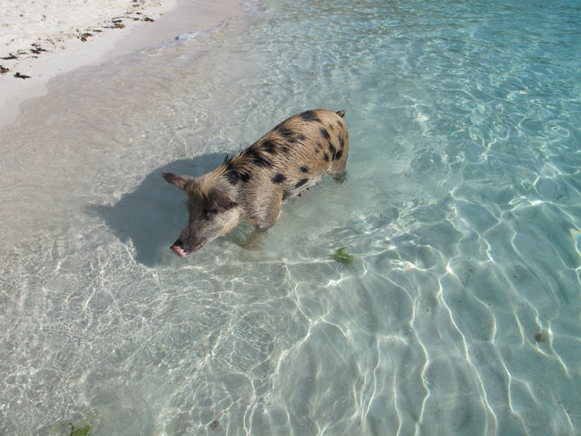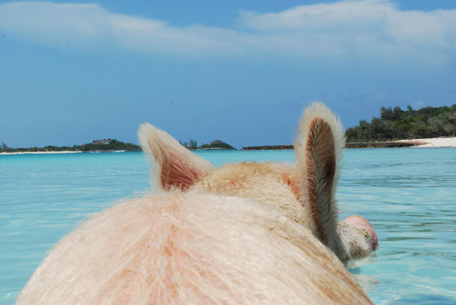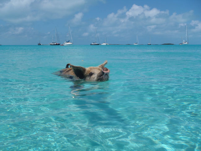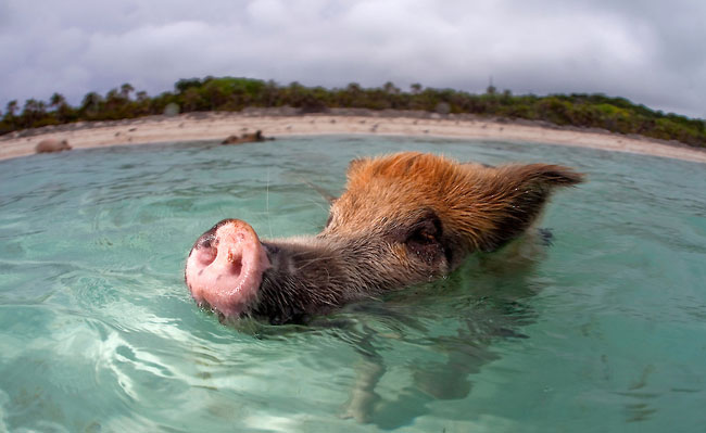 Οι επισκέπτες του μικρού ακατοίκητου νησιού Big Major Cay, στις Μπαχάμες, βρίσκονται προ εκπλήξεως όταν βλέπουν αυτά τα γουρουνάκια να απολαμβάνουν τον ήλιο και να κολουμπούν με όρεξη και επιδεξιότητα στη θάλασσα!