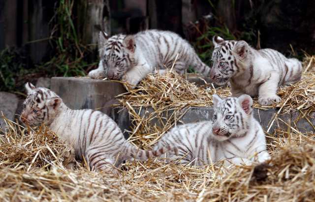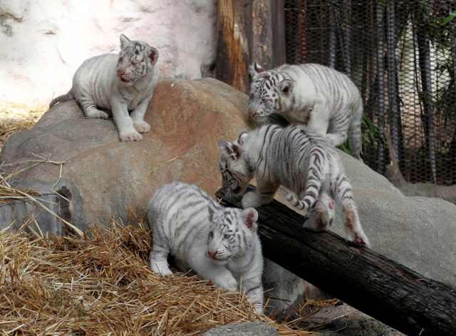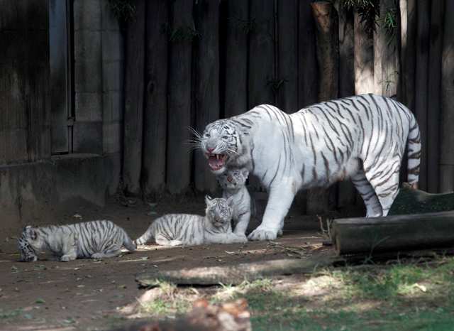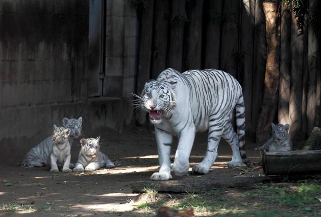 Τον περασμένο Ιανουάριο μια θηλυκή λευκή τίγρης της Βεγγάλης γέννησε τέσσερα μικρά, ανεβάζοντας το συνολικό αριθμό που φιλοξενείται στο ζωολογικό κήπο στις εννιά.
