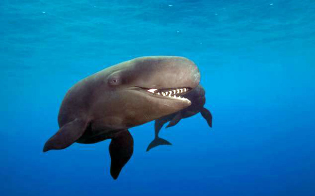 Μπορεί να μοιάζει λίγο στις φάλαινες δολοφόνους (από εκεί έχει πάρει και το όνομά της ως «ψεύτικη φάλαινα δολοφόνος» – false killer whale-) όμως με αυτό το χαμόγελο… δε θα τρομάξει κανέναν!