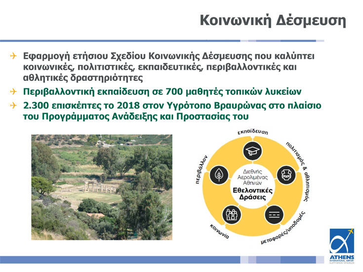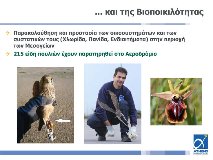 Ανέλαβε επίσης την περιβαλλοντολογική εκπαίδευση σε 700 μαθητές τοπικών λυκείων, όπως επίσης σε 88 υπαλλήλους από 13 εταιρείες που δραστηριοποιούνται στο αεροδρόμιο.