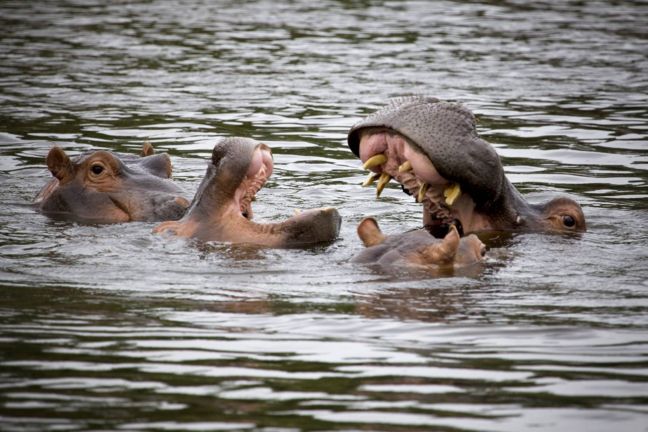 Κι επειδή ως γνωστόν το χασμουρητό είναι μεταδοτικό, δεν άργησαν και οι υπόλοιποι ιπποπόταμοι να ακολουθήσουν το παράδειγμά του και να ανοίξουν διάπλατα τα στόματά τους.