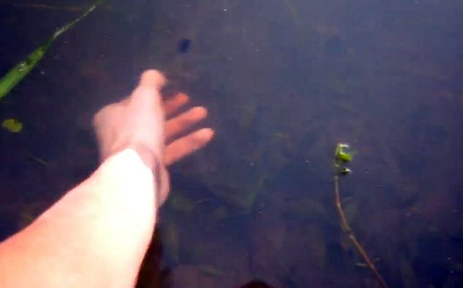 Αυτός ο ψαράς δεν είναι από αυτούς που κάθονται με τις ώρες στη βάρκα και περιμένουν τη στιγμή που τσιμπάει το ψάρι. Αντίθετα, προτιμά έναν πολύ πιο εύκολο τρόπο, ψαρεύοντας με το χέρι.