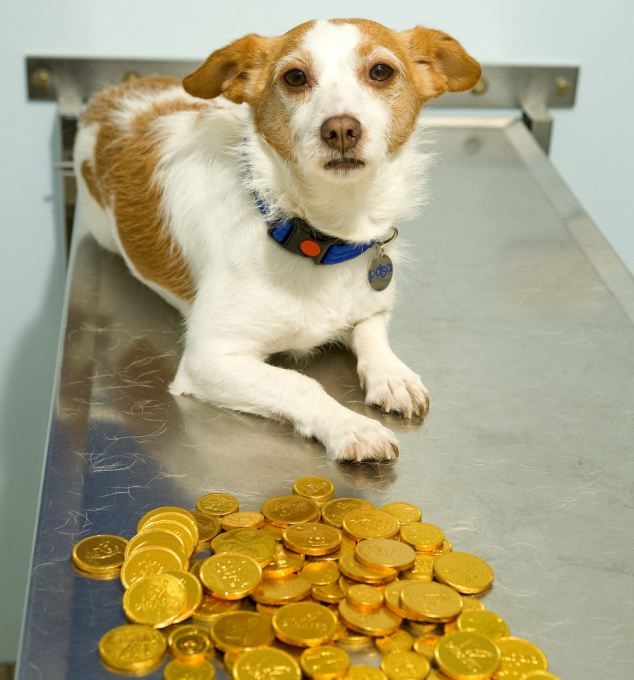 Η φράση «θάνατος από σοκολάτα» παραλίγο να γίνει κυριολεξία για μία σκυλίτσα από τη Βρετανία. Η χαριτωμένη Μόλι γλίτωσε από του Χάρου τα δόντια, αφού έφαγε περίπου 20 σοκολατένια νομίσματα, που είχε αφήσει η αφεντικίνα της πάνω σε μία καρέκλα.