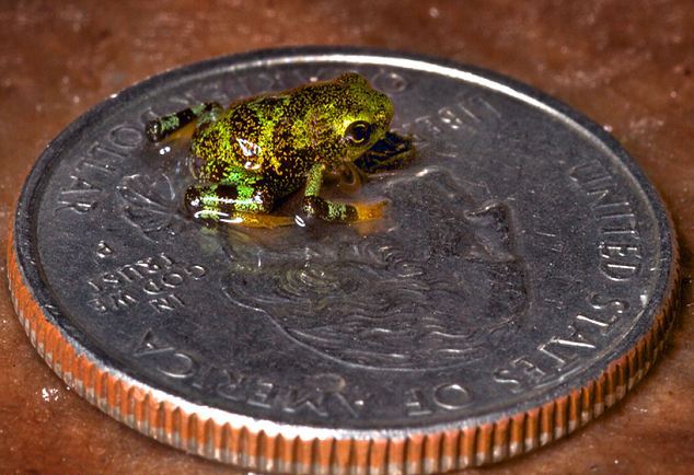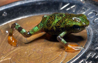 Ο μικροσκοπικός αυτός βάτραχος που στέκεται επάνω σε ένα κέρμα είναι ένας limosa harlequin. Το συγκεκριμένο είδος αναπαράχθηκε πρόσφατα από ερευνητές από το κέντρο προστασίας και διατήρησης των αμφίβιων στον Παναμά για πρώτη φορά.