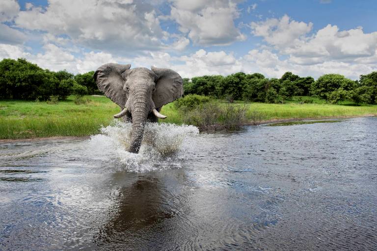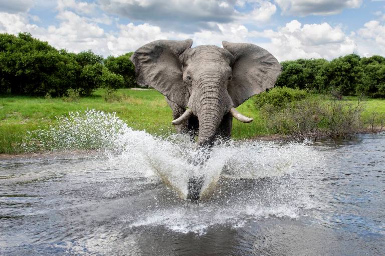 Παρόλα αυτά, ο ελέφαντας βάρους πέντε τόνων και ύψους 3,5 μέτρων, αποδείχτηκε ότι δεν αποτελούσε απειλή για τον φωτογράφο καθώς αφού «πλατσούρισε» στο νερό εξαφανίστηκε προχωρώντας με ήρεμο βήμα σε αντίθεση κατεύθυνση.