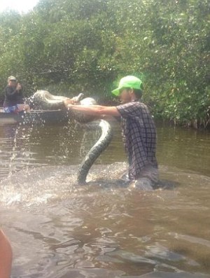 Αφού απομάκρυνε την τουριστική βάρκα από το σημείο, ο ξεναγός Tommy Owens άρπαξε το φίδι κάτω από το νερό. Ωστόσο, δεν είχε συνειδητοποιήσει το μέγεθος και τη δύναμη του ερπετού, καθώς ξεπερνούσε τα 3 μέτρα!