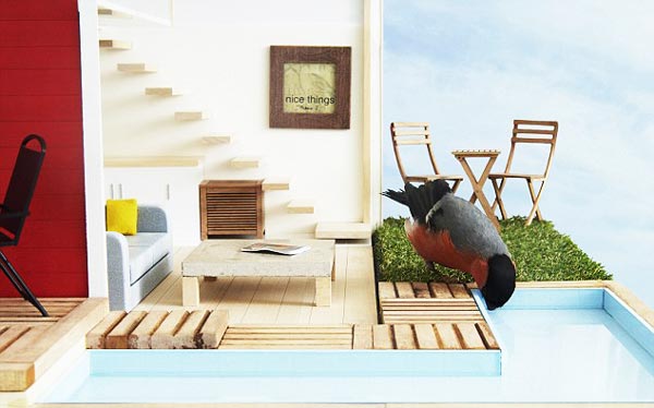 Ένα εντυπωσιακό σπιτάκι για πουλιά το οποίο περιλαμβάνει καθιστικό, γυμναστήριο, περιποιημένο γκαζόν αλλά και πισίνα για τις ζεστές μέρες του καλοκαιριού κατασκεύασε σουηδική εταιρεία.