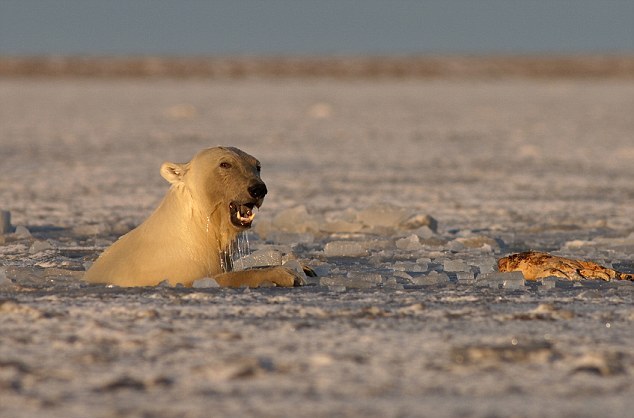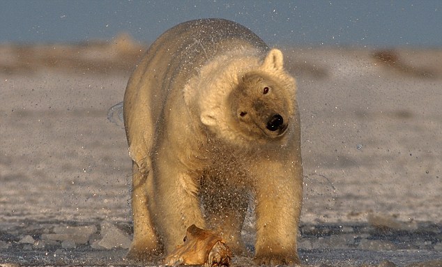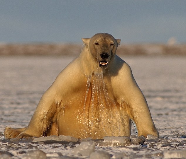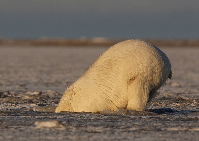 Το παιχνίδια της 5χρονης αρκούδας με τον πάγο, καθώς βούτα και βγαίνει από τα παγωμένα νερά, διήρκεσε αρκετή ώρα, προσφέροντας την ευκαιρία στον Kazlowski να τραβήξει μια σειρά φωτογραφικών καρέ. Το μεγαλόσωμο ζώο είχε εντοπίσει την ουρά μιας φώκιας, κάτι που αποτέλεσε ένα πρώτης τάξεως παιχνίδι.