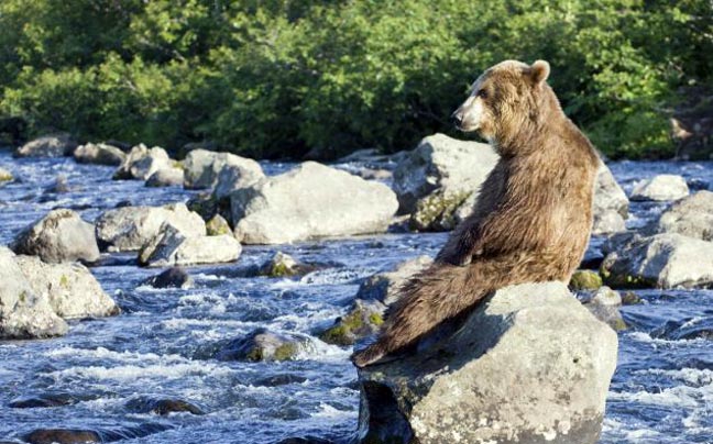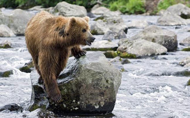 Στη συνέχεια, η αρκούδα βρήκε ένα μεγάλο βράχο ώστε να μπορέσει να ανέβει ολόκληρη και να ξεκουραστεί.