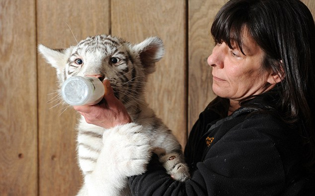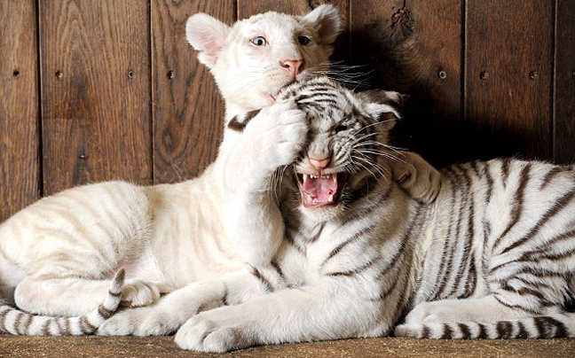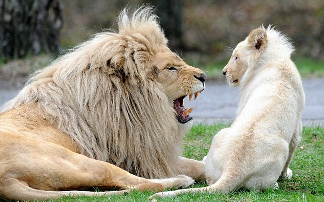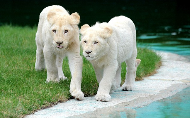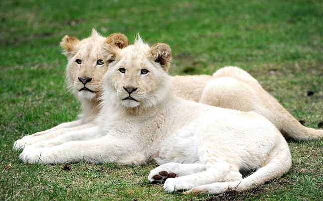 Ένα πάρκο σαφάρι στη Γερμανία γιορτάζει τα πρώτα γενέθλια των λευκών λιονταριών Tyler, Muck, Nandor και Masai που πήγαν στο καταφύγιο Holte-Stukenbrock τον Ιούλιο του 2012. Αυτού του είδους τα ζώα θεωρούνται πλέον εξαιρετικά σπάνια. Εκτιμάται πως μόνο 500 λευκά λιοντάρια βρίσκονται στη φύση.