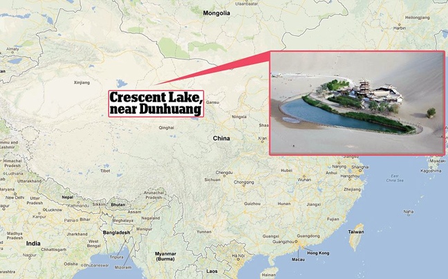 Η όαση βρίσκεται στην έρημο της Κίνας έξι χιλιόμετρα νότια από την πόλη Dunhuang, η οποία βρίσκεται στα βορειοδυτικά της πόλης.