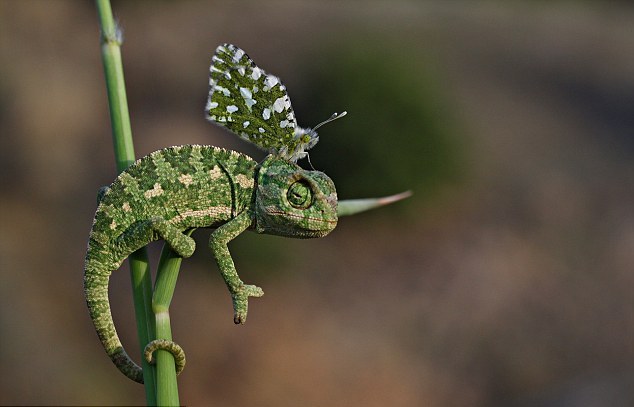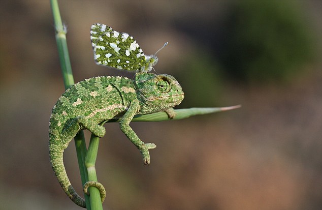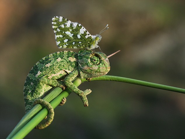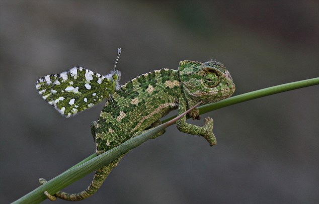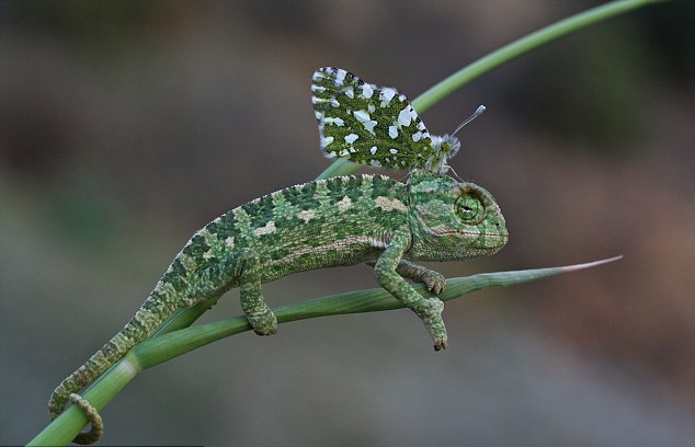 Και η συγκεκριμένη πεταλούδα βρήκε το κατάλληλο «καταφύγιο» επάνω στον χαμαιλέοντα!