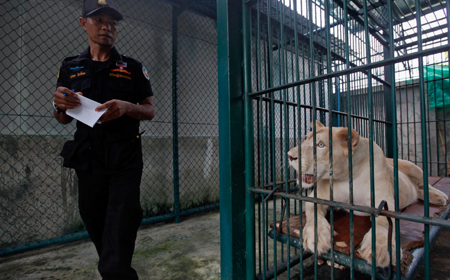 Μεταξύ άλλων δεκατέσσερα λευκά λιοντάρια, δώδεκα παγώνια, δεκαεπτά σκιουροπίθηκοι και ακόμα πάρα πολλά ζώα βρέθηκαν παγιδευμένα μέσα σε κλουβιά.
