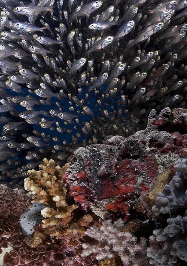 Τις εντυπώσεις έκλεψε η πρώτη φωτογραφία του Hamid Rad ο οποίος μας δείχνει πώς ένα ψάρι βλέπει τον κόσμο! Η φωτογραφία τραβήχτηκε στη New Guinea και ανακηρύχθηκε η νικήτρια εικόνα στην κατηγορία υφάλων και ακρωτηρίων.