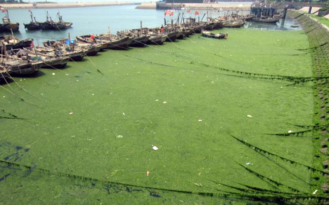 Η ακτή που θυμίζει λιβάδι βρίσκεται στην επαρχία Shandong της Κίνας και το πράσινο στρώμα που την έχει καλύψει είναι φύκια με την ονομασία «Enteromorpha prolifera» ή «μαρούλι της θάλασσας».