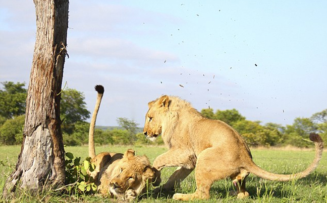 Η εικόνα του αποπνέει δύναμη και κυριαρχία αλλά υπάρχουν στιγμές που και το λιοντάρι δεν είναι παρά ένα αιλουροειδές που θέλει… παιχνίδι. Μια τέτοια στιγμή ανάμεσα σε δύο λιοντάρια αποτύπωσε στο φακό του ο φωτογράφος David Jenkins στο Antelope Park στη Zimbabwe.