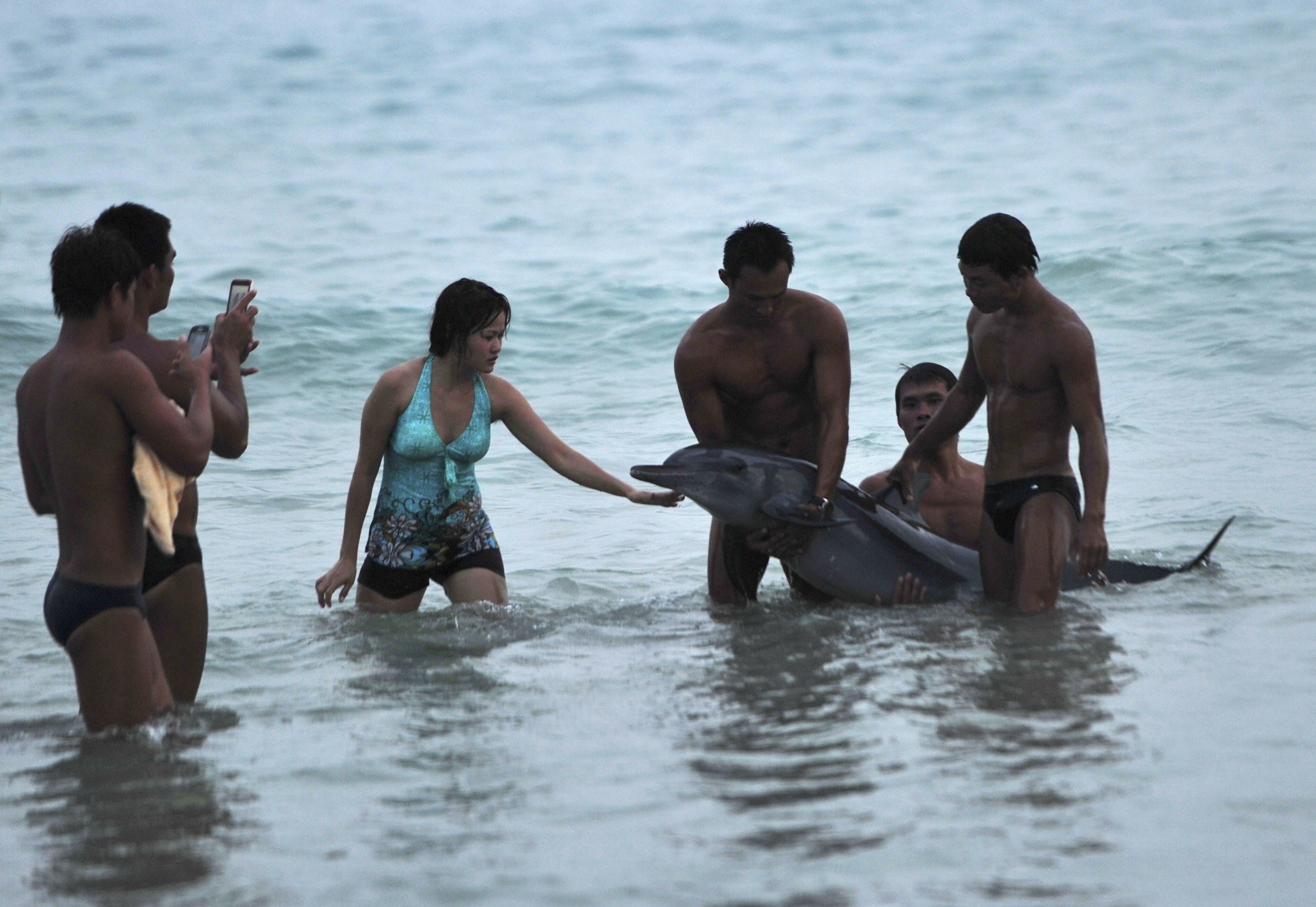 Μόνο η αρχή της ατυχίας του ήταν για ένα δελφίνι το ότι βγήκε μόνο του στα ρηχά στην επαρχία Hainan στην Κίνα.