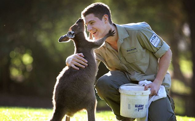 Η Pebble το ορφανό καγκουρό δεν αφήνει στιγμή το θετό «πατέρα» του, Luke Simmonds.