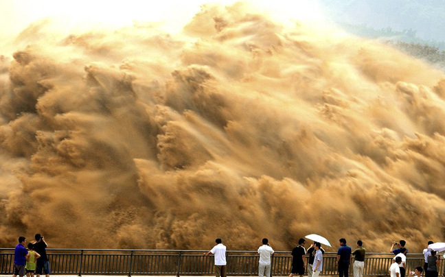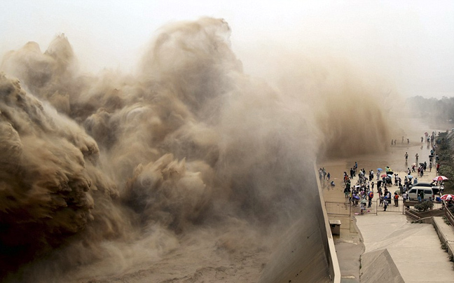 Μοιάζουν σαν καρέ από ταινία της Αποκάλυψης αλλά πρόκειται για φωτογραφίες από την ετήσια επιχείρηση μετακίνησης τριάντα εκατομμυρίων τόνων νερού και λάσπης από ένα φράγμα στην επαρχία Χενάν της Κίνας.
