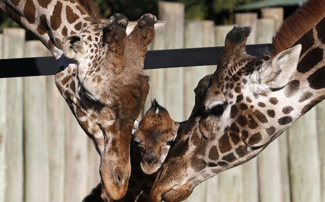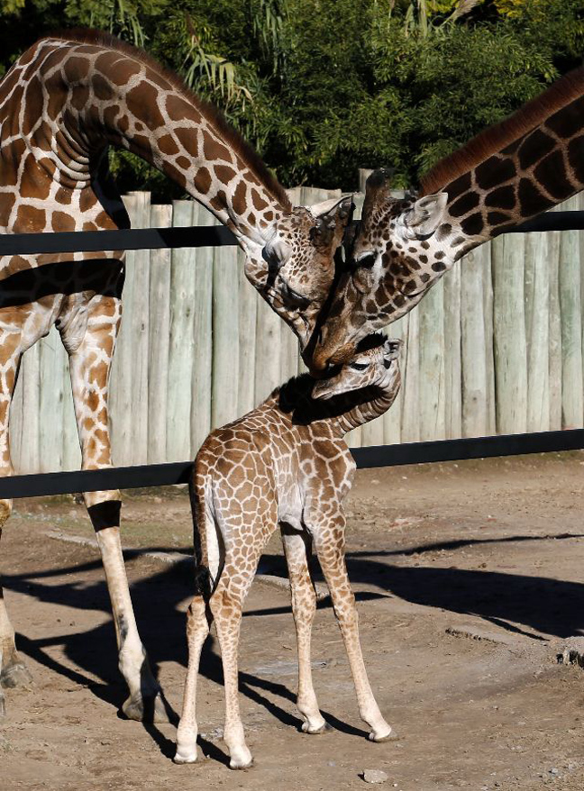Έξι ημερών έγινε η μικρή καμηλοπάρδαλη της φωτογραφίας και όπως κάθε νεογέννητο απολαμβάνει την αγάπη των γονιών της. Ο μπαμπάς Buddy και η μαμά Jacky είναι προστατευτικοί όπως όλοι οι γονείς των περισσότερων ειδών στον πλανήτη και δεν αφήνουν στιγμή από τα μάτια τους το μικρό τους.
