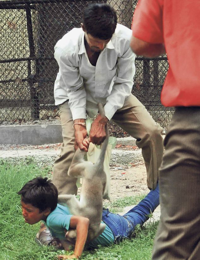 Ένα μικρό αγόρι τραυματίστηκε όταν δέχθηκε επίθεση από μαϊμού ενώ επισκεπτόταν με τον πατέρα του ζωολογικό κήπο στην περιοχή Ratlam στην Ινδία. Εργαζόμενος στον ζωολογικό κήπο έδωσε μάχη για να σώσει το αγόρι από τη μαϊμού.