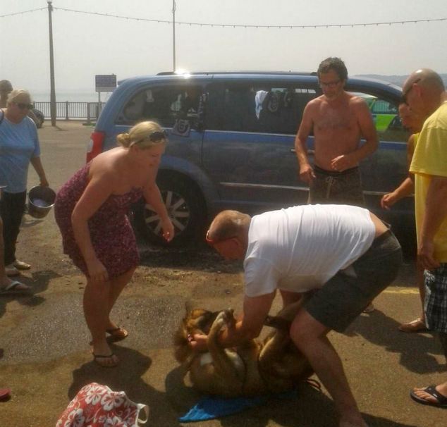 Με τη θερμοκρασία να φτάνει τους 30 βαθμούς Κελσίου την περασμένη Παρασκευή στο Exmouth του Devon, οι ιδιοκτήτες του ταλαιπωρημένου σκύλου στις παρακάτω φωτογραφίες, θεώρησαν σώφρον να τον παρατήσουν κλειδωμένο στο αυτοκίνητό τους, αφήνοντας ελάχιστα ανοιχτό το ένα παράθυρο για να μπαίνει αέρας!