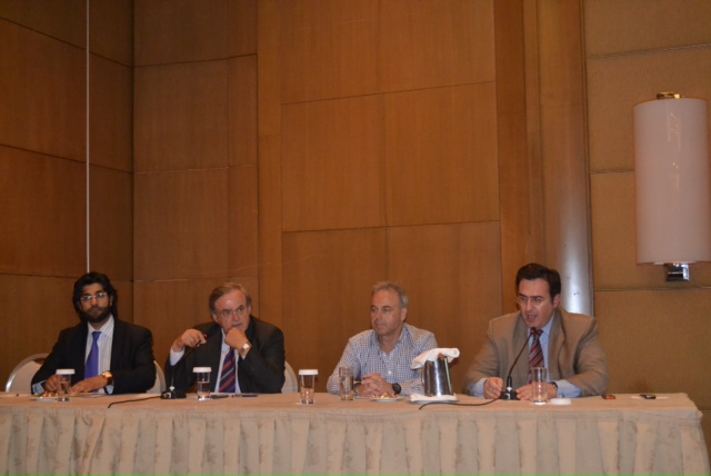 Κατά το κλείσιμο των εργασιών του συνεδρίου, ο Πρόεδρος του New York College συγχαίρει τους διοργανωτές δηλώνοντας ότι το συνέδριο θα έχει την υποστήριξη του Κολλεγίου για τα επόμενα χρόνια. Αριστερά-Δεξια : Dr. Imran Patel, Διοργανωτής του Συνεδρίου, κ. Ηλίας Φουτσης, Πρόεδρος New York College, Καθηγητής Ηλίας Σιώρης, University of Bolton και Αρης Φ. Ματθαιου, New York College Public Relations