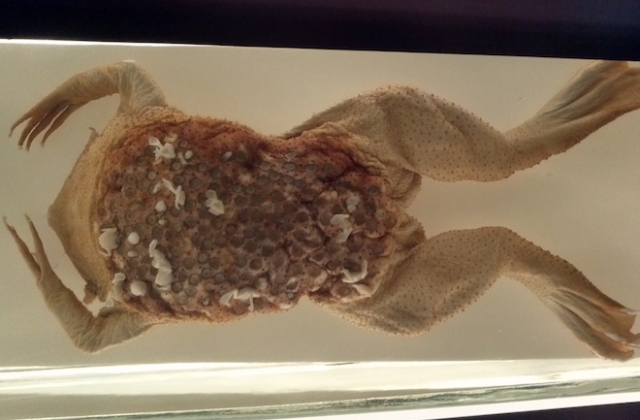 Ένα ακόμα ζώο, ο βάτραχος Surinam είναι ένα φρικτά άσχημο και αηδιαστικό πλάσμα στην όψη, καθώς τα αυγά του είναι ενσωματωμένα στο δέρμα του θηλυκού βατράχου, που μοιάζει ουσιαστικά με κερήθρα. Οι προνύμφες αργότερα αναπτύσσονται μέχρι να φτάσουν το στάδιο του γυρίνου μέσα στο ίδιο το σώμα της μητέρας.
