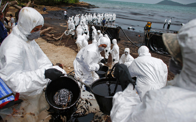 Περίπου 50.000 λίτρα αργού πετρελαίου διέρρευσαν στη θάλασσα σε απόσταση περίπου 20 χιλιομέτρων στα ανοιχτά της ακτής της Rayong, νοτιοανατολικά της Μπανγκόκ, αλλά, όπως φαίνεται από τις φωτογραφίες, το πετρέλαιο έφτασε στην ακτή. Οι αρχές ξεκίνησαν επιχείρηση προκειμένου να καθαριστεί από το πετρέλαιο η παραλία.