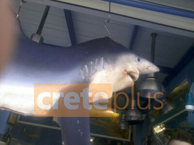 Το μεγάλο καρχαριοειδές, αλιεύτηκε από επαγγελματία ψαρά στην Αγία Γαλήνη και μεταφέρθηκε προς πώληση σε ιχθυοπωλείο.