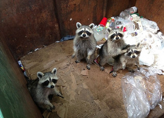 Τα ρακούν είχαν μπει κατά τη διάρκεια της νύχτας μέσα στον κάδο, αναζητώντας τροφή, όμως τελικά εγκλωβίστηκαν μέσα σε αυτόν, μέχρι τη στιγμή που τα εντόπισε η Danique.