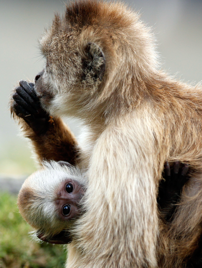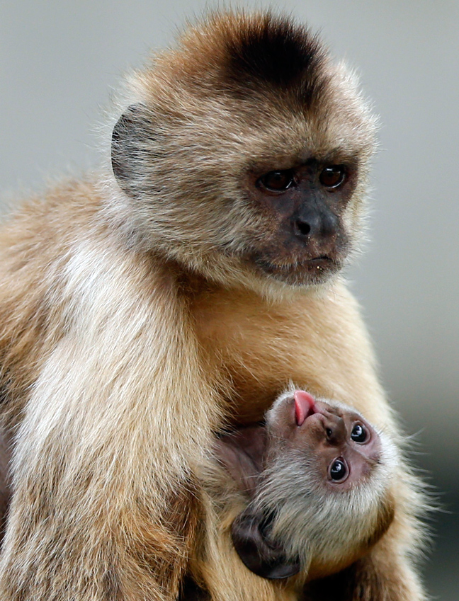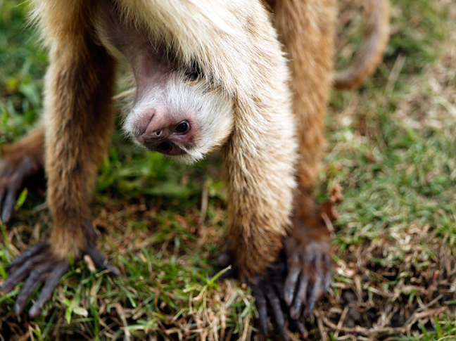 Τον κόσμο… ανάποδα βλέπει ο μικρός καπουτσίνος της φωτογραφίας που δεν ξεκολλά από τη μαμά του.
