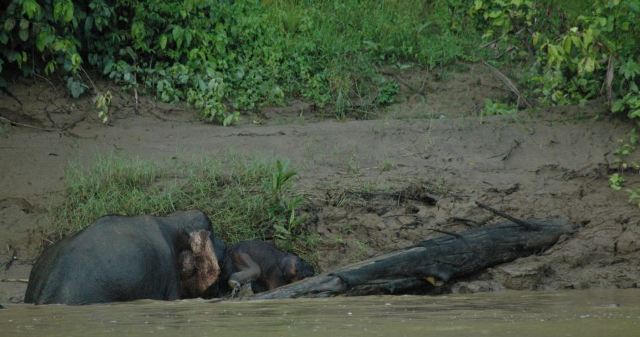 Ένα μικρό ελεφαντάκι «κόλλησε» στις λάσπες στην προσπάθειά του να βγει στην όχθη ενός ποταμού.
