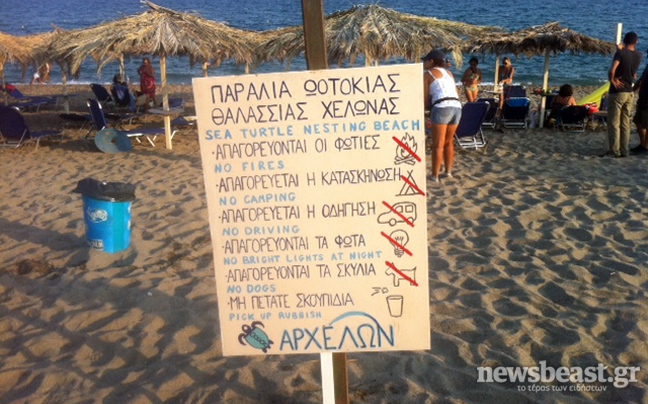 Μόλις γεννηθούν τα μικρά χελωνάκια ελάχιστα από αυτά φτάνουν στη θάλασσα. Κι αυτό που τα ενοχλεί, είναι τα δεκάδες φώτα των καταστημάτων και των ταβερνών με αποτέλεσμα εκείνα αντί να πηγαίνουν προς τη θάλασσα, να αποπροσανατολίζονται από το φως, να ακολουθούν άλλο δρόμο και κατ’ επέκταση να πεθαίνουν. Κι όλα αυτά τη στιγμή που στην παραλία υπάρχει η ένδειξη για την προστασία της θαλάσσιας χελώνας.