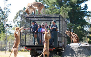 Πιο κοντά σε κοπάδι με πεινασμένα λιοντάρια από οποιονδήποτε άλλο βρίσκονται οι επισκέπτες στο Orana Wildlife Park της Νέας Ζηλανδίας. Το κινητό κλουβί, στο οποίο κλείνονται οι τουρίστες, τους επιτρέπει να βρεθούν σε απόσταση αναπνοής από το βασιλιά του ζωικού βασιλείου και μάλιστα την ώρα του φαγητού.