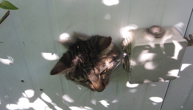 Οι γάτες είναι ευκίνητα και ευλύγιστα ζώα, όμως καμιά φορά φαίνεται πώς δε μπορούν να υπολογίσουν σωστά τις διαστάσεις τους και τις διαστάσεις των σημείων από τα οποία δοκιμάζουν να περάσουν με αποτέλεσμα… να εγκλωβίζονται όπως η συγκεκριμένη στις παρακάτω φωτογραφίες.
