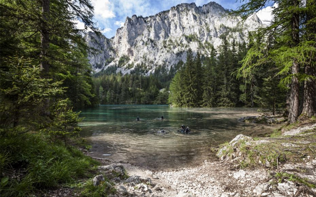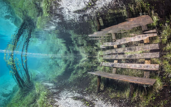 Κανονικά, όπως γράφει η Daily Mail, η λίμνη Green στην Tragoess της Αυστρίας έχει βάθος μόλις ένα μέτρο. Αλλά κάθε χρόνο, όταν το χιόνι στα γύρω βουνά λιώνει, η λίμνη πλημμυρίζει και όλο το τοπίο… βυθίζεται.