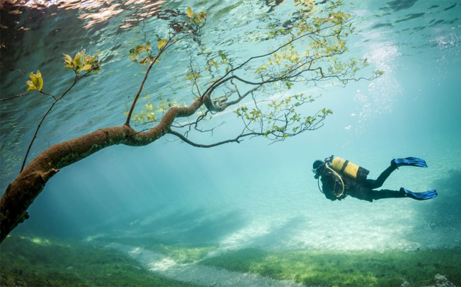 Διότι δεν πρόκειται για φωτογραφίες από το βυθό της θάλασσας αλλά από λίμνη στην Αυστρία η οποία κάθε χρόνο πλημμυρίζει, καλύπτοντας με νερό τα πάντα στη γύρω περιοχή.