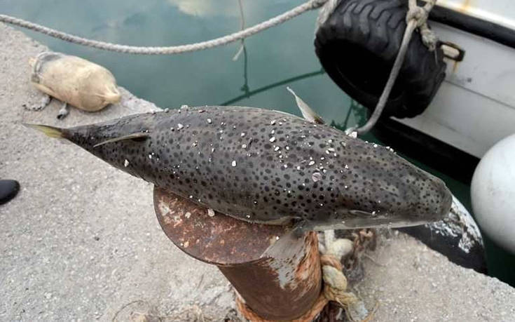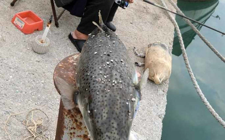 Έναν τεράστιο λαγοκέφαλο βάρους 9,5 κιλών και μήκους 73 εκατοστών έπιασαν ψαράδες στη Σούδα.