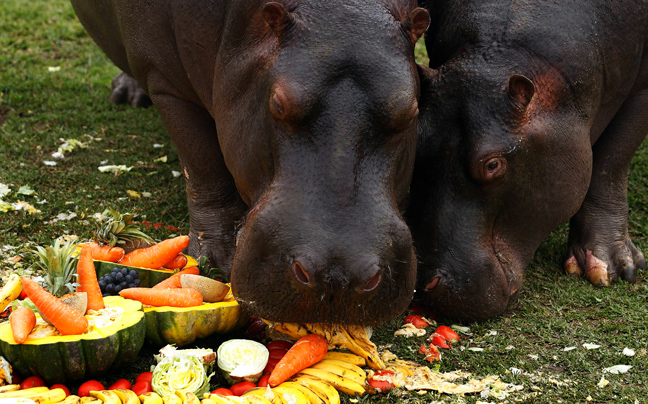 Τα τρία του χρόνια έκλεισε ο ιπποπόταμος Sol στον ζωολογικό κήπο Parque de Las Leyendas στη Λίμα του Περού. Οι υπεύθυνοι του ζωολογικού κήπου φρόντισαν ο Sol να το γιορτάσει όπως πρέπει, με μία μεγάλη «τούρτα» από λαχανικά.