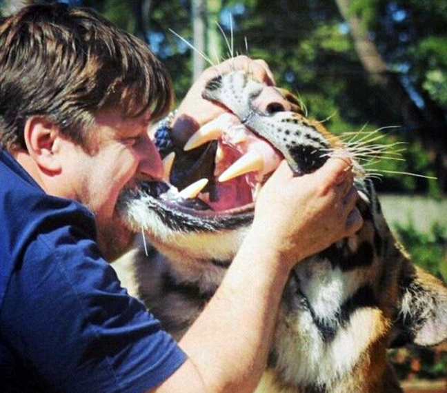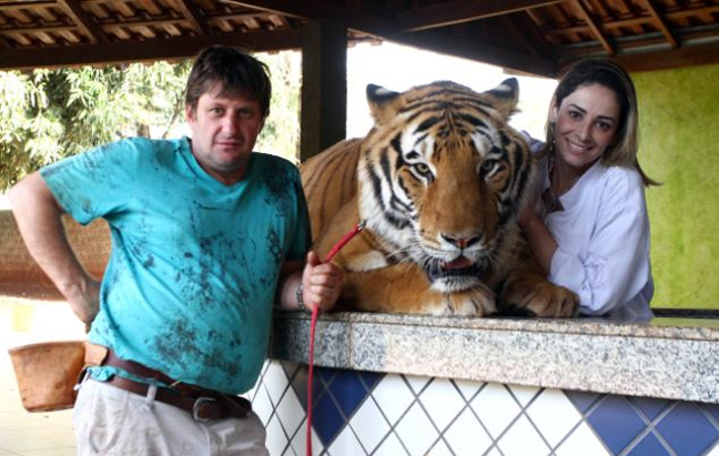 Οι κόρες του, η 20χρονη Nayara, η 23χρονη Uyara και η 24χρονη Deusanira, βγάζουν τις τίγρεςι βόλτα με λουράκι και τις ταΐζουν απευθείας στο στόμα.