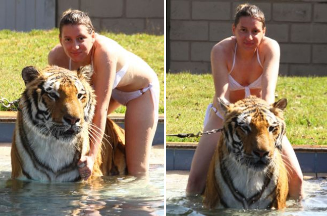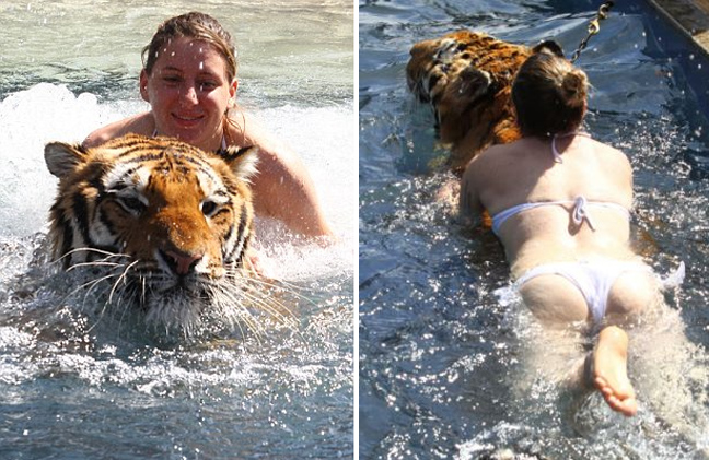 Η Nayara κολυμπά συχνά με τον τίγρη Tom και σκαρφαλώνει στην πλάτη του ενώ εκείνος διασχίζει τη πισίνα. «Βουτάμε κάθε εβδομάδα για να κρατιέται σε φόρμα. Δεν μπαίνει πλέον στο νερό με κανέναν άλλο, έχει συνδέσει την πισίνα μαζί μου», λέει η ίδια.