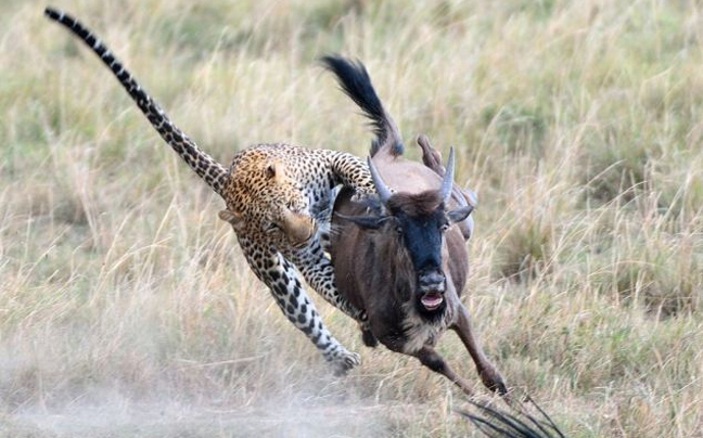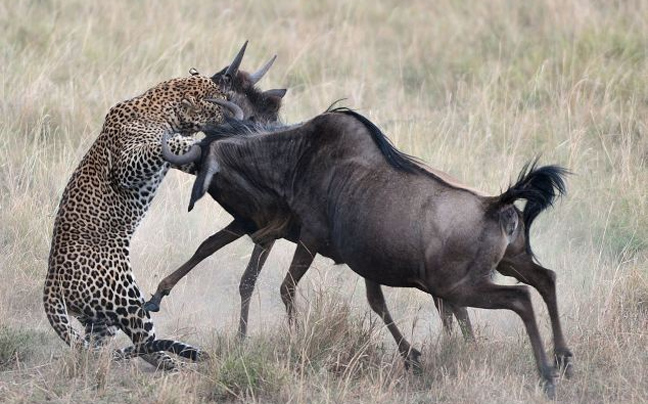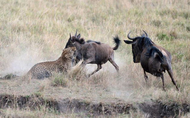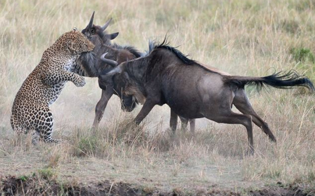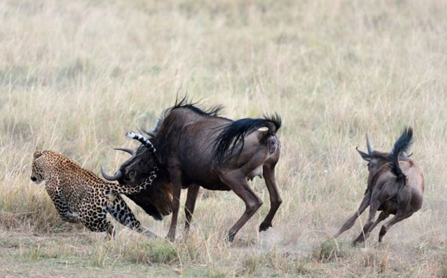 Στο βίντεο φαίνεται η λεοπάρδαλη, που γνωρίζει πολύ καλά ποιος είναι ο πιο αδύναμος της υπόθεσης και στοχεύει εκείνον, να βουτά το μικρό γκνου. Δεν είχε όμως υπολογίσει την αυτοθυσία της μαμάς του, που αντεπιτέθηκε και χτύπησε με τα κέρατά της τη λεοπάρδαλη, αναγκάζοντάς τη να το βάλει στα πόδια…